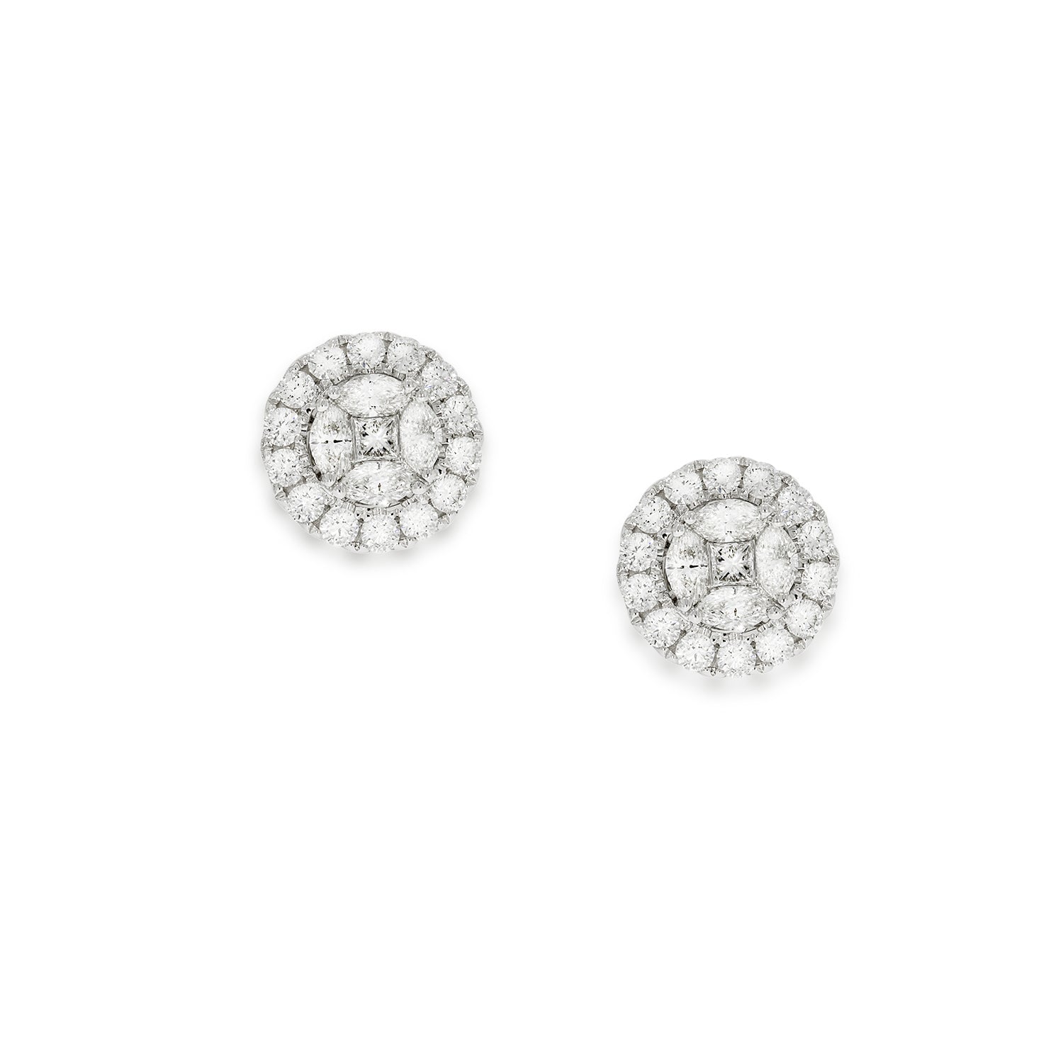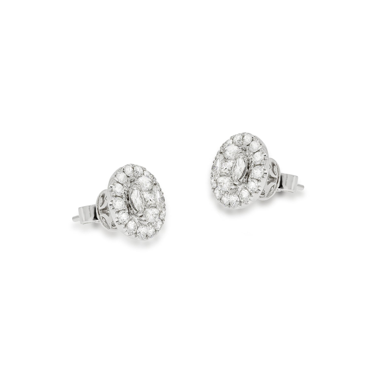 Beautiful unique stud earrings 1.59 ct. natural brilliant cut diamonds. shape as Sun / flower with 38 sparkling diamonds .   in 18K white gold.