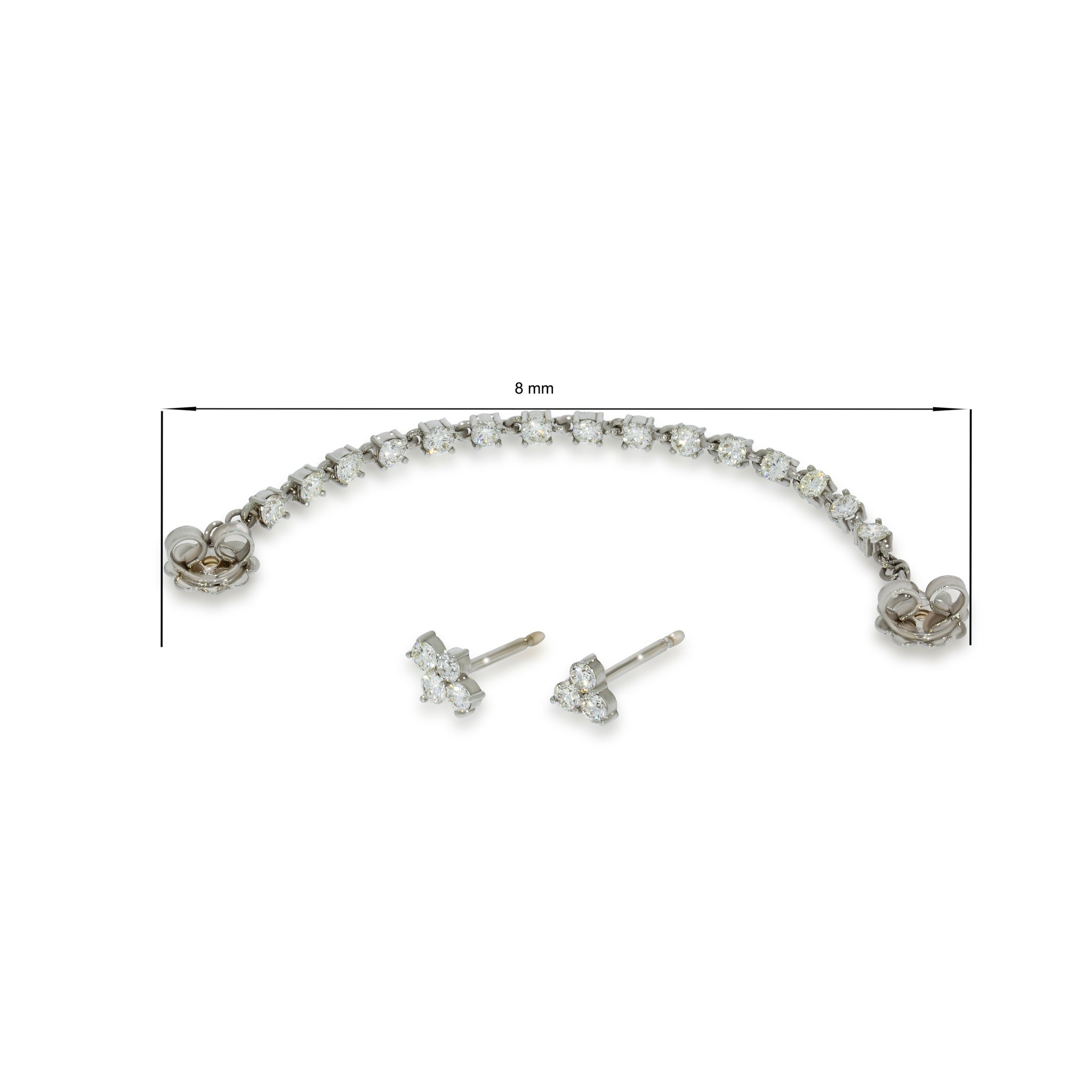 Double piercings Tennis Diamonds earring / Stud Diamond earring. 18k white gold set with 1.10 carat round sparkling diamonds.