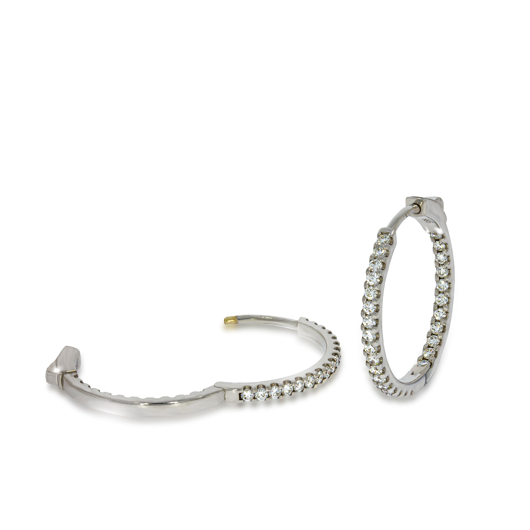 Impressive, powerful and unique appearance hoop earrings 14k white gold, set all around with 0.8ct drawing admiration from all angles.