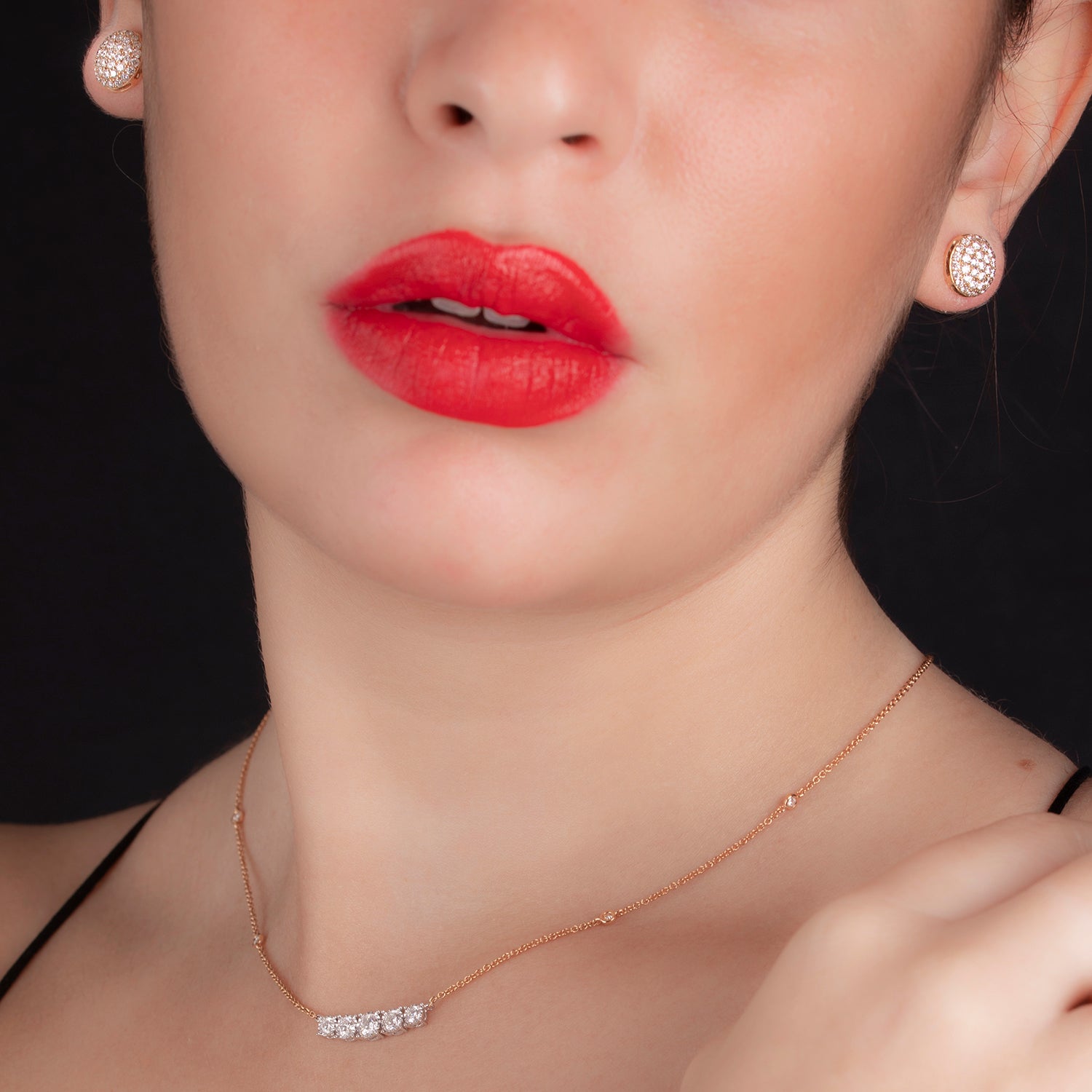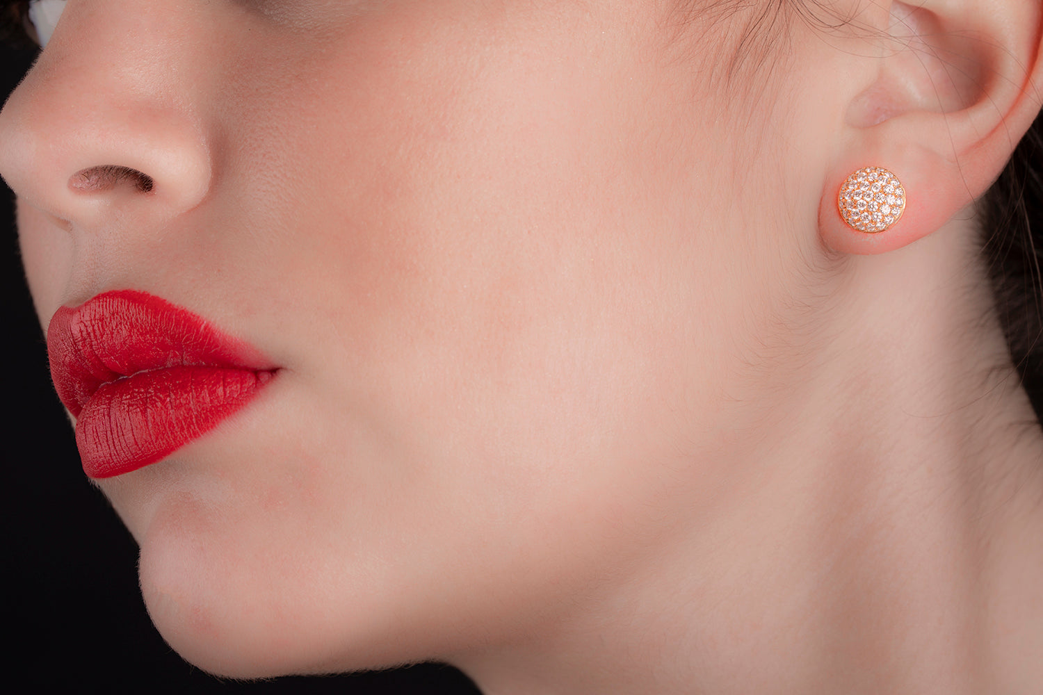 Round Pave Diamond Stud Earrings | 74 round brilliant cut diamonds set in 18k rose gold round stud earrings | sparkling stud wedding earring