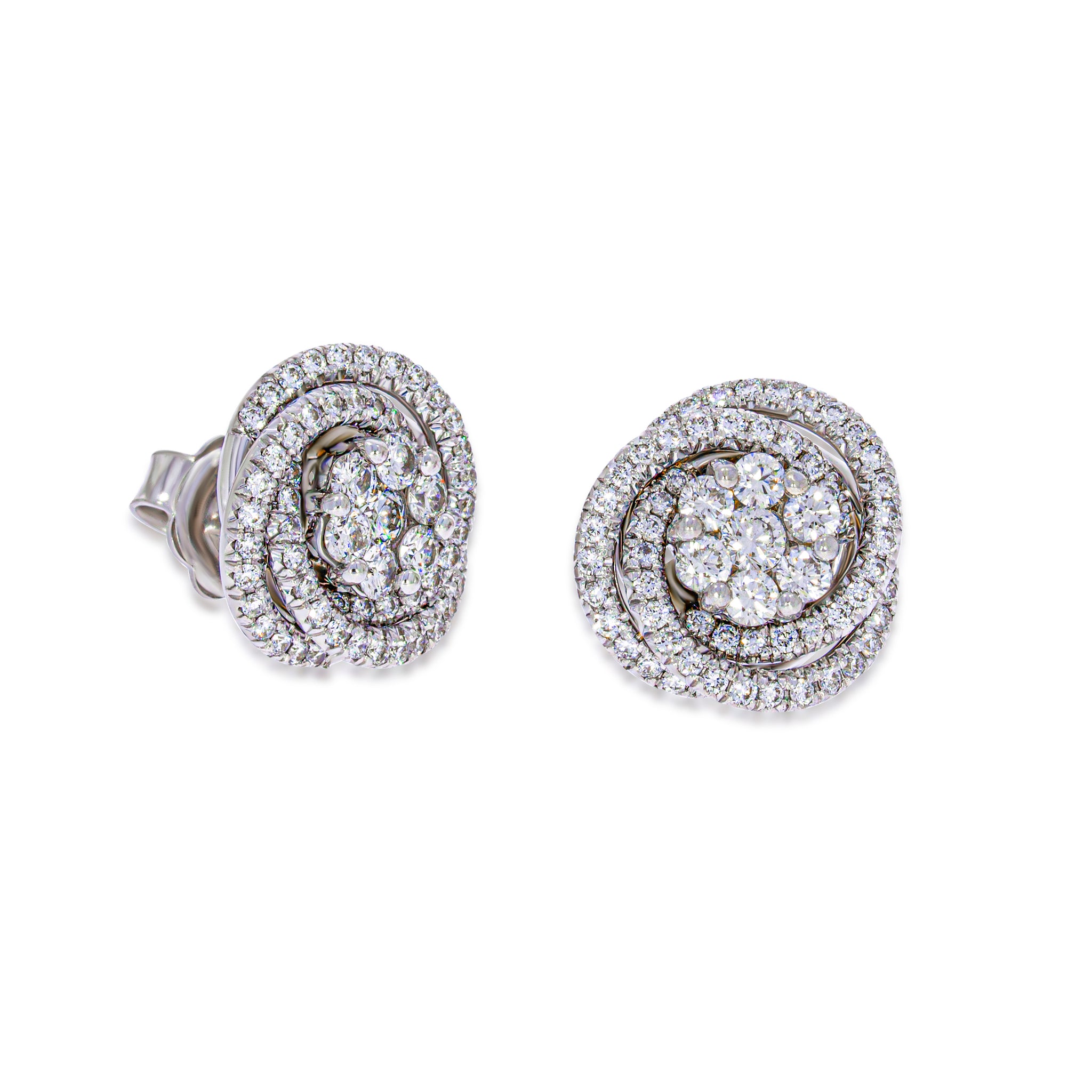 1.42 round diamonds set in a 18k white gold beautiful design earring.