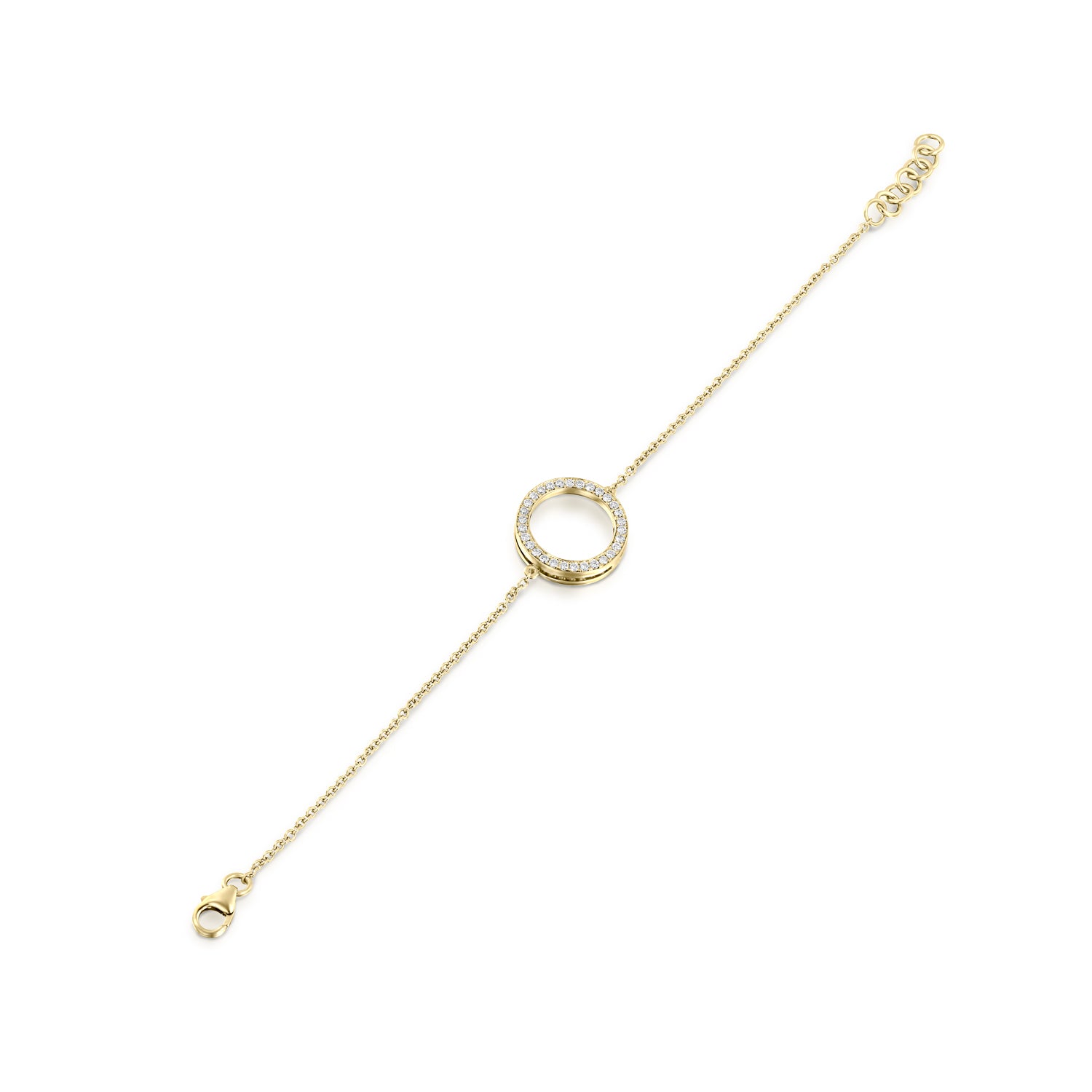 Delicate gold chain bracelet with circle diamond pendant Great as wedding bride jewelry setAvailable in: white, rose and yellow gold in 18k goldProduct descriptionStones: DiamondThe number of diamonds: 31Diamonds weight:...