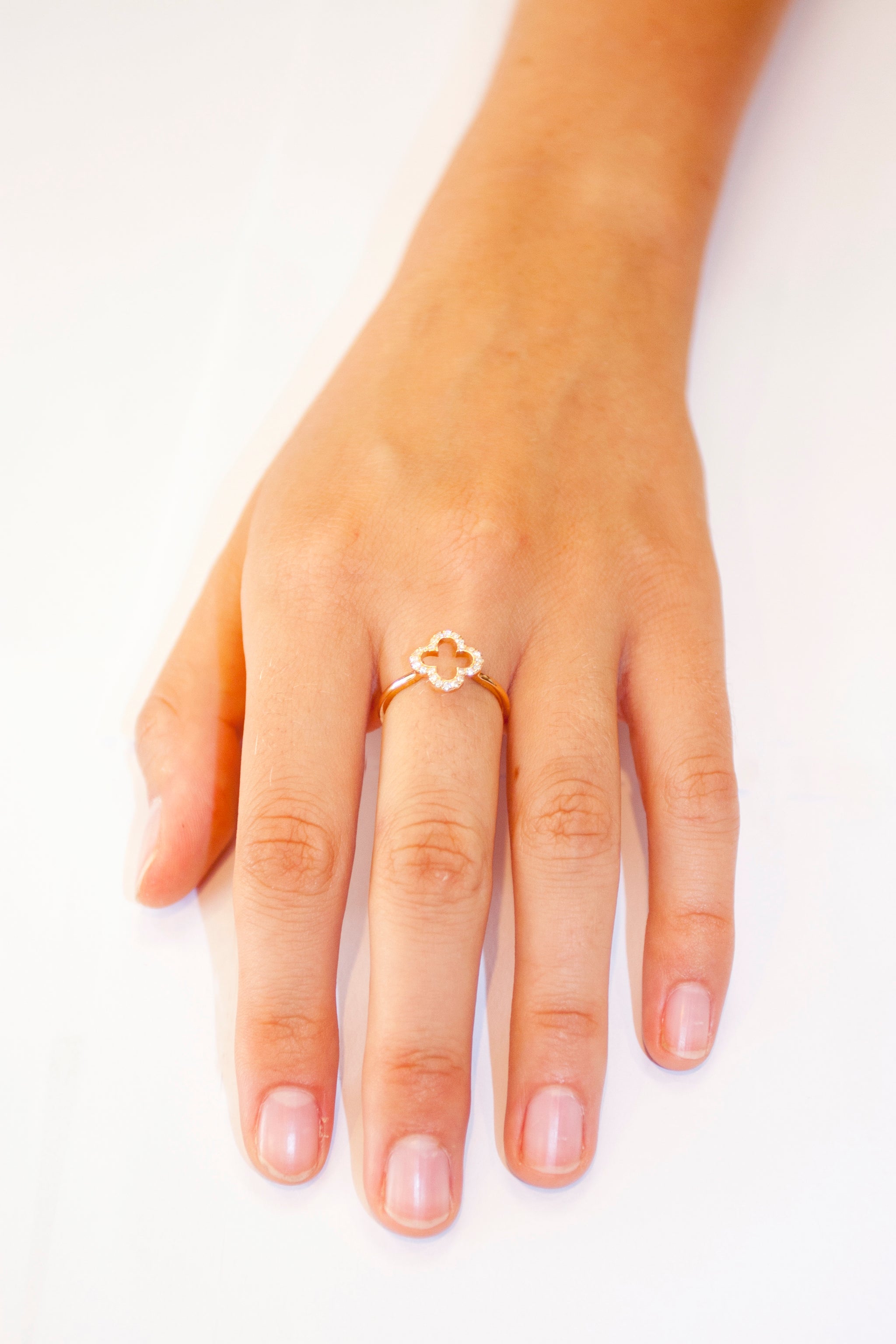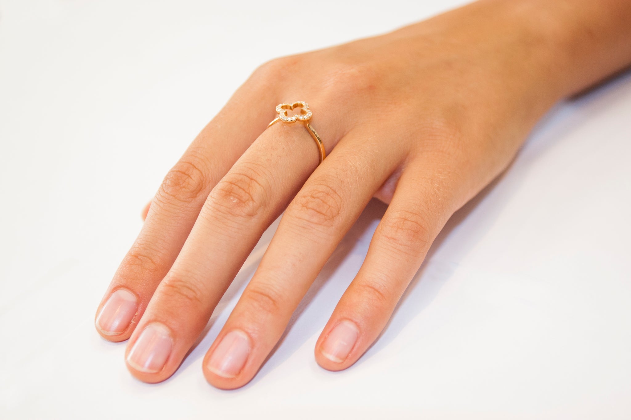 This lovely clover ring is accentuated by the diamonds to silhouette the clover design further. This ring will make high graduation, anniversary, wedding, or just as a gift!