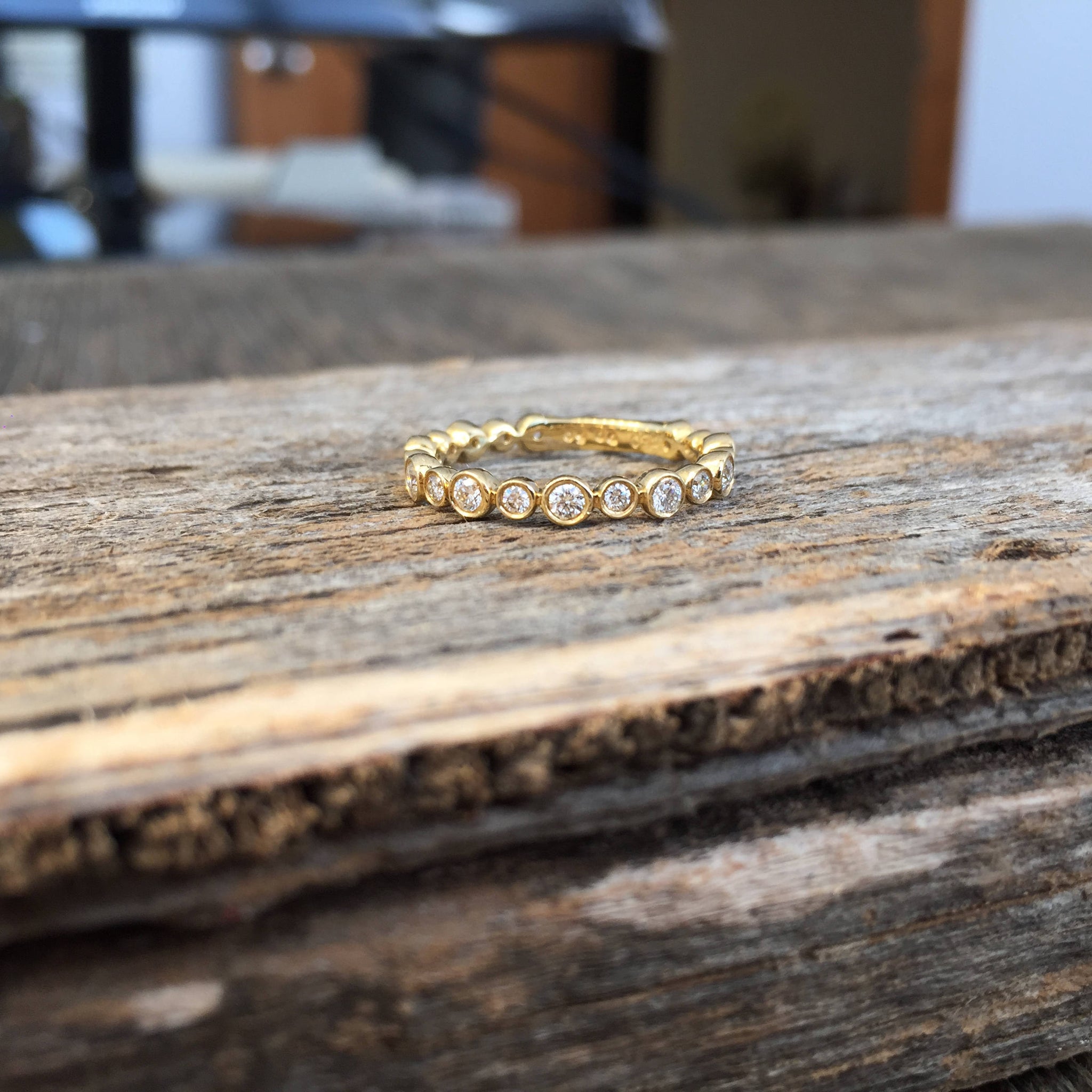 R3859-Eternity Bubble diamond ring bezel ring - 18k Yellow gold
