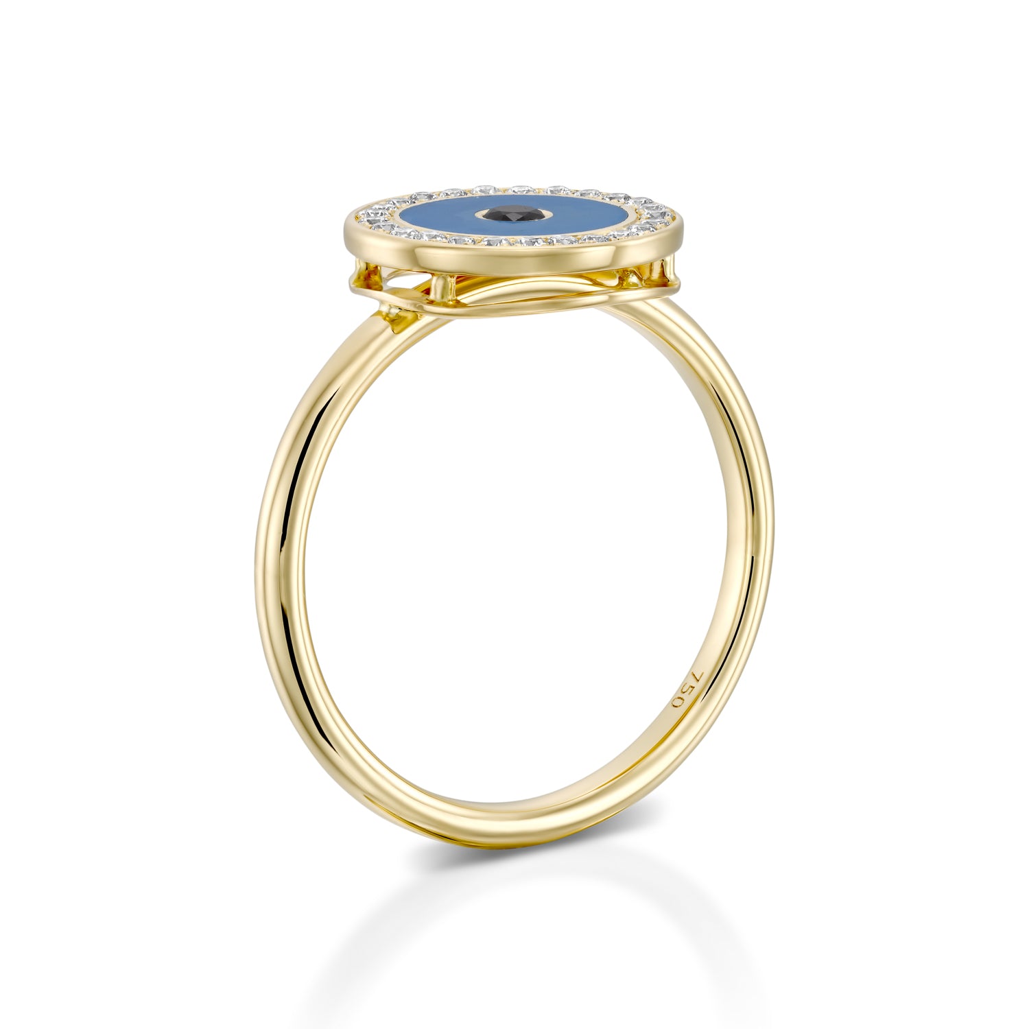 The beauty of this ring enhanced by a stylish Eye, made of turquoise handmade enamel, surrounded by white sparkling diamonds and black diamond in the center.
