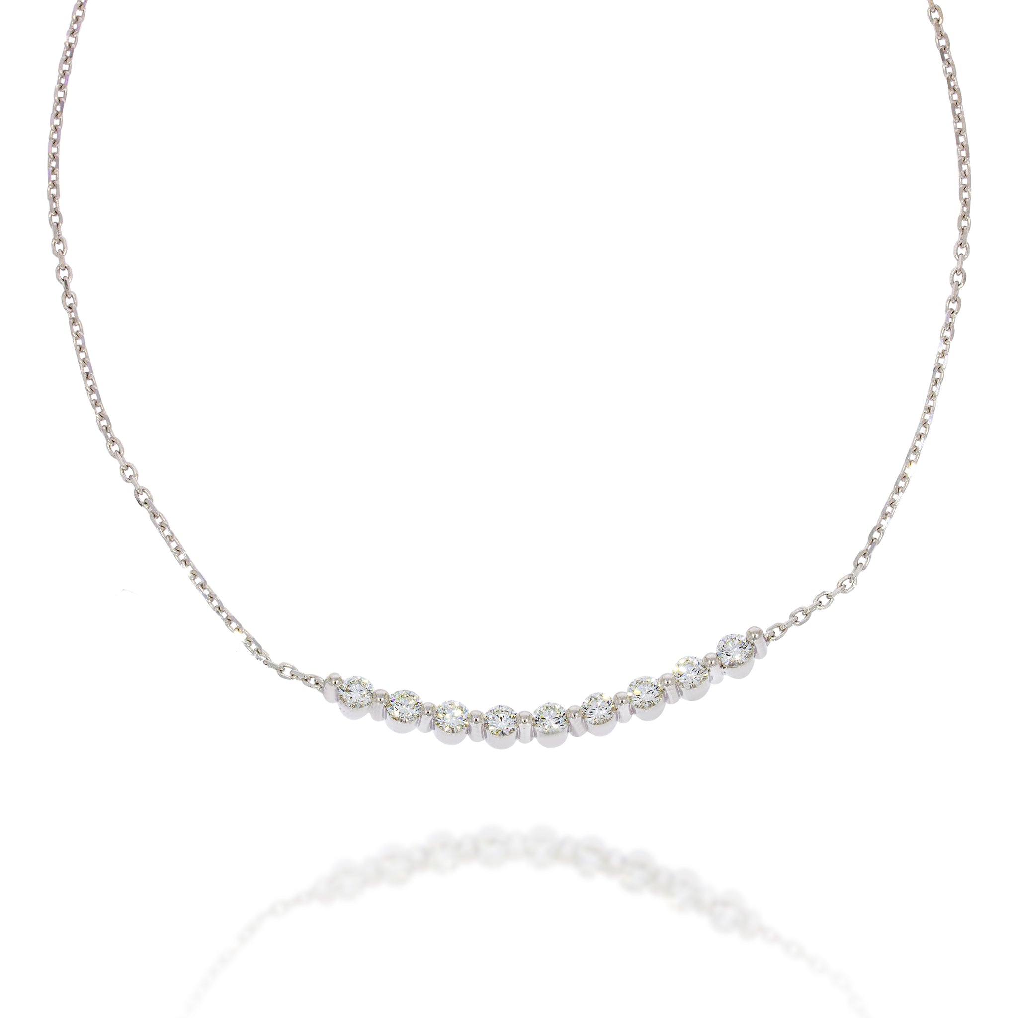 9 round diamonds, buetiful bazel set pendant Suspended from a fine 14K white gold chain.