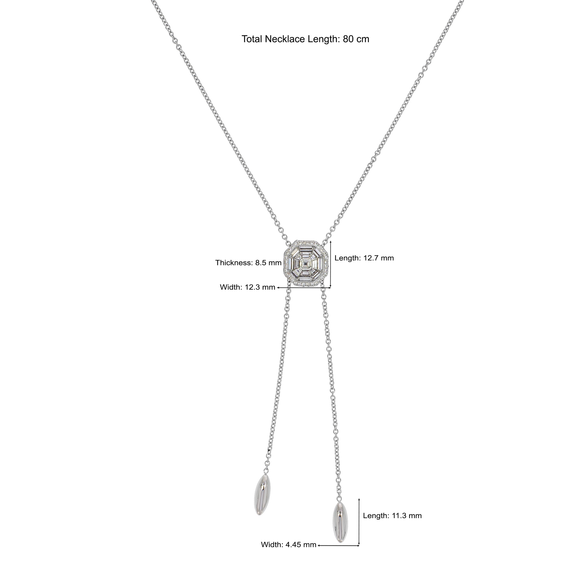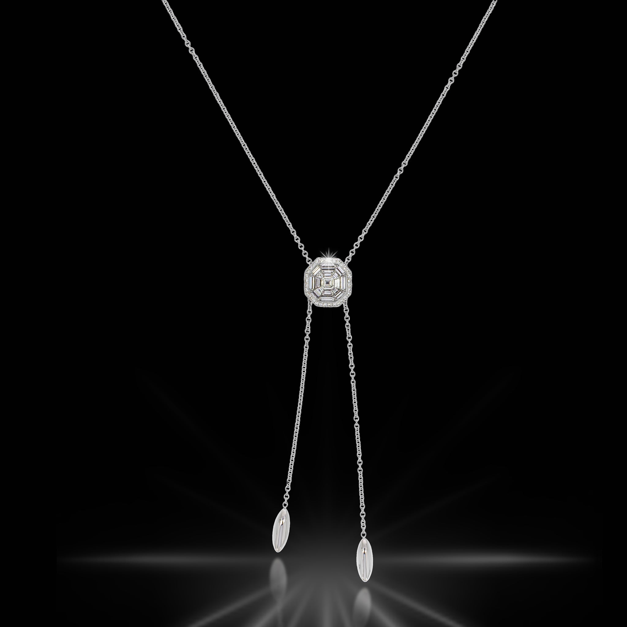 Delicate Tie Design Diamonds Neckless, Octagon sliding pendant, Halo Design: Surrounding invisable set with Baguette and asher cut diamonds.