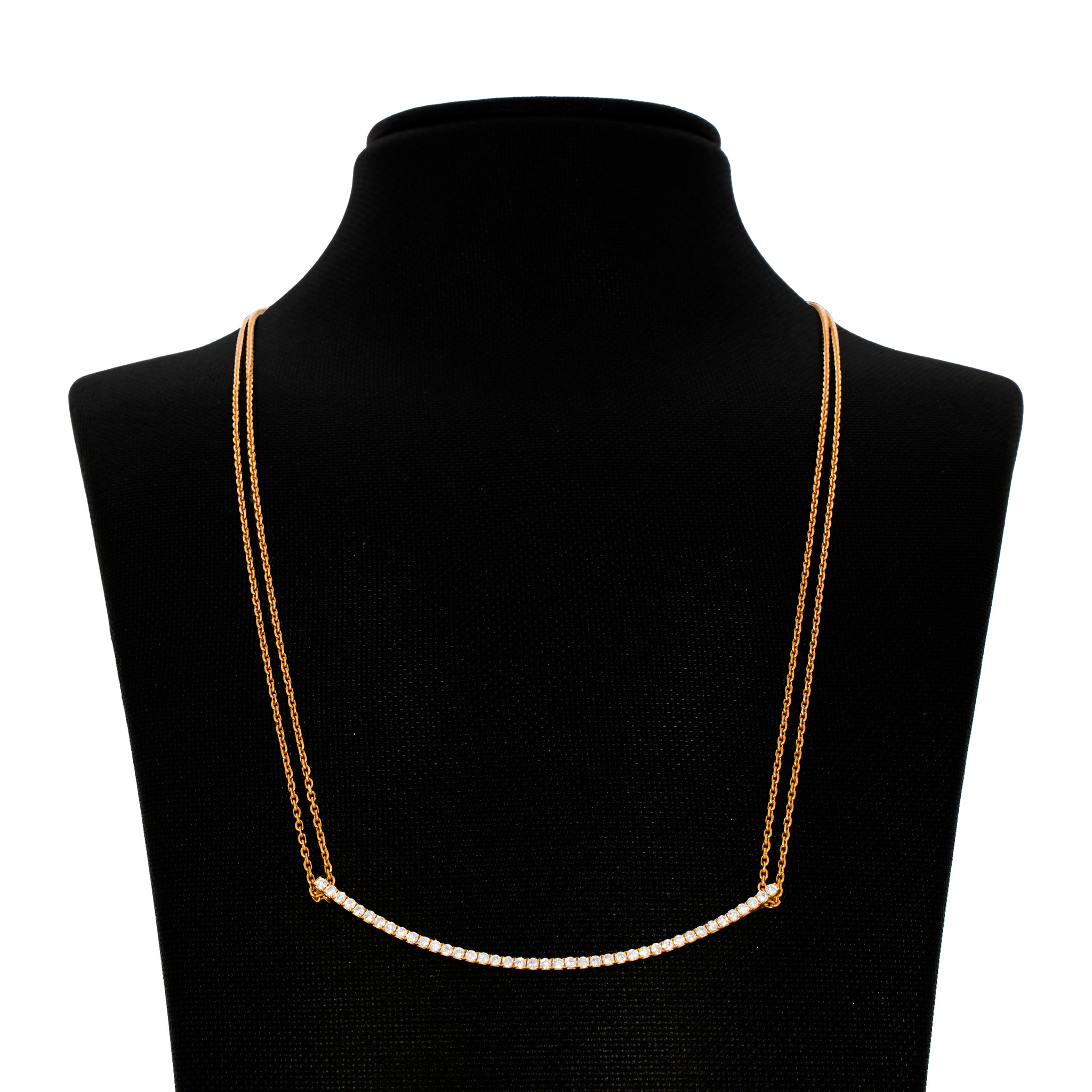 Elegant Diamond Bar Pendant, brilliance across your neckline.The white gold double chain adds a layered look with delicate dimension, offering both strength and grace in its structure.This piece is a...
