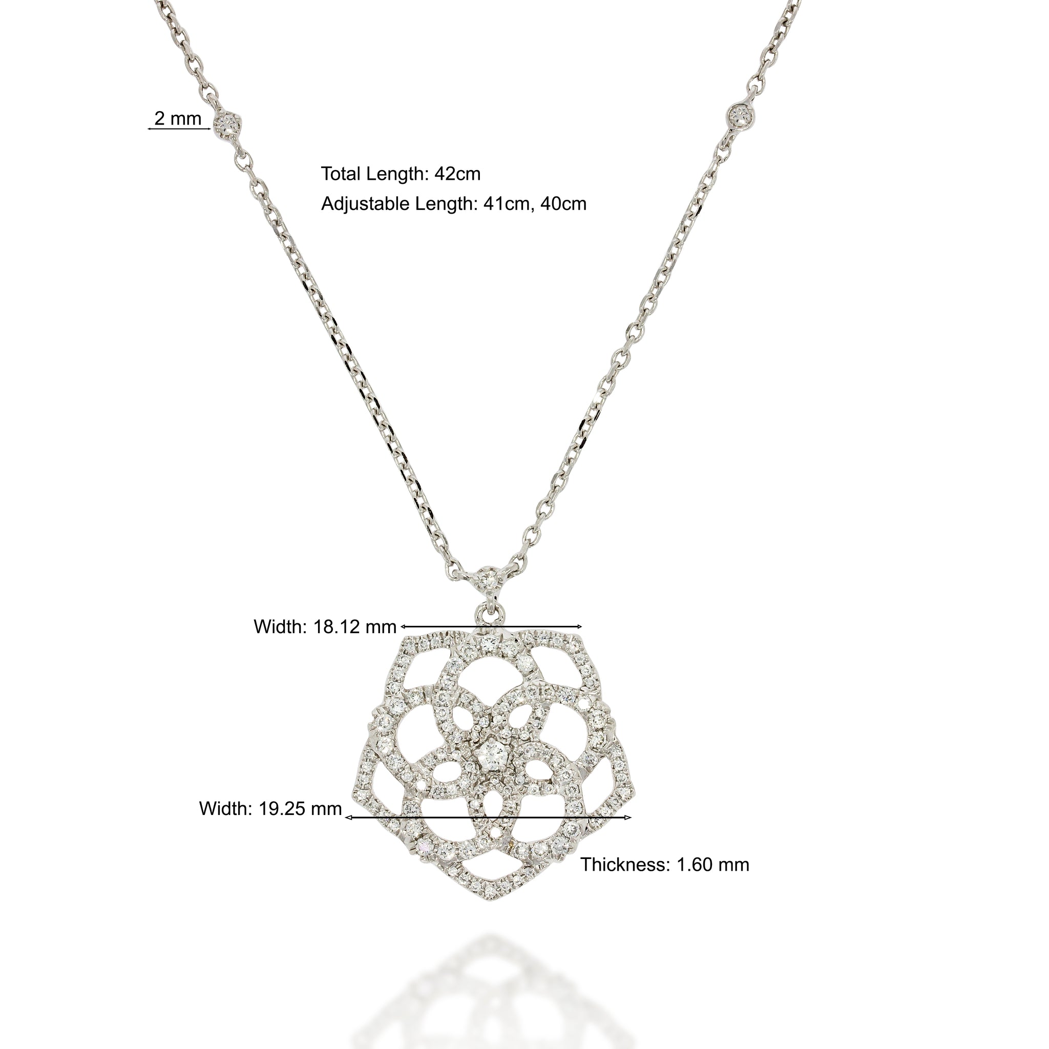 Embrace the perfect blend of symbolism and sophistication with our exquisite Mandela pendant. Crafted in luxurious 18k white gold, this pendant feature 0.48 sparkling rounds diamonds, includes a captivating diamond at its centre. A timeless piece.