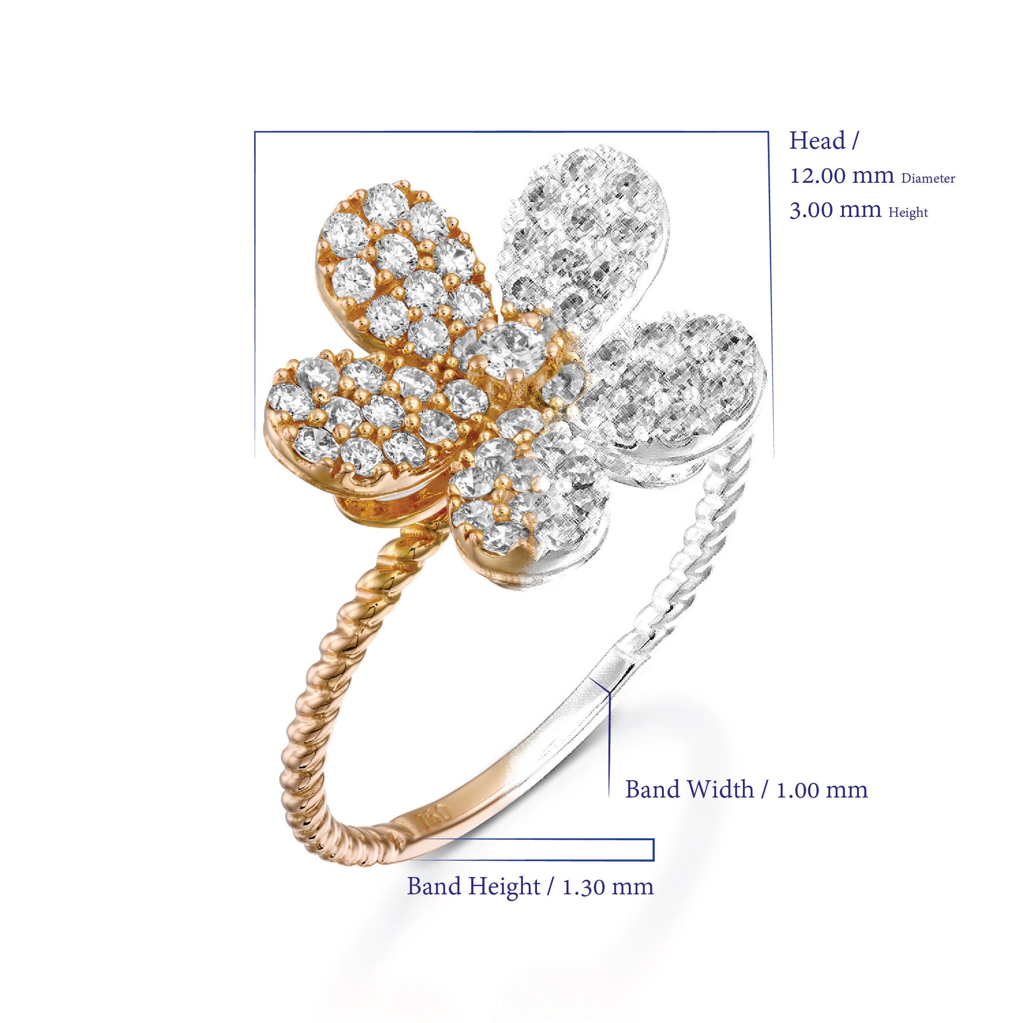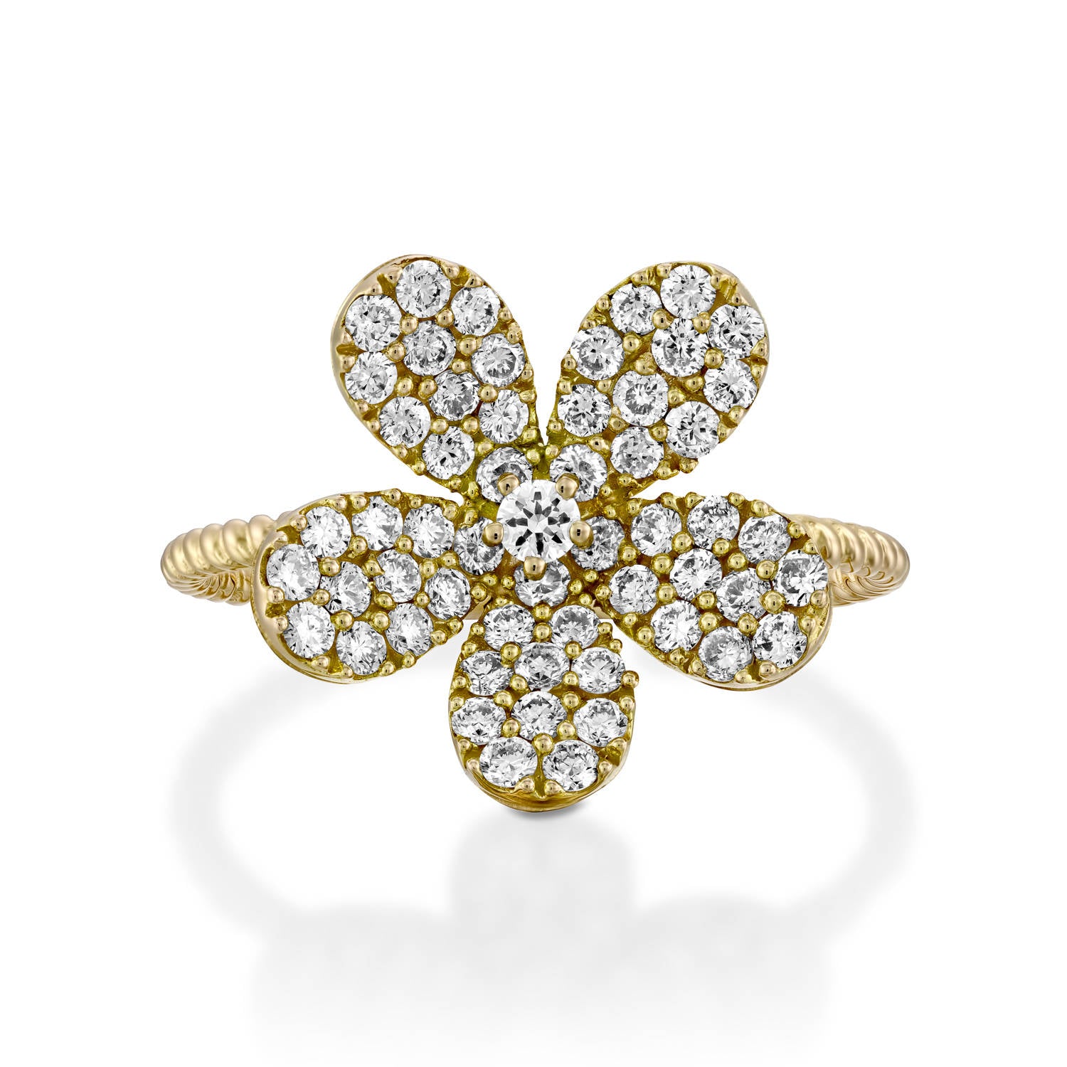 Blooming Flower Shaped Ring with five petals inlaid with 56 natural sparkling diamonds.