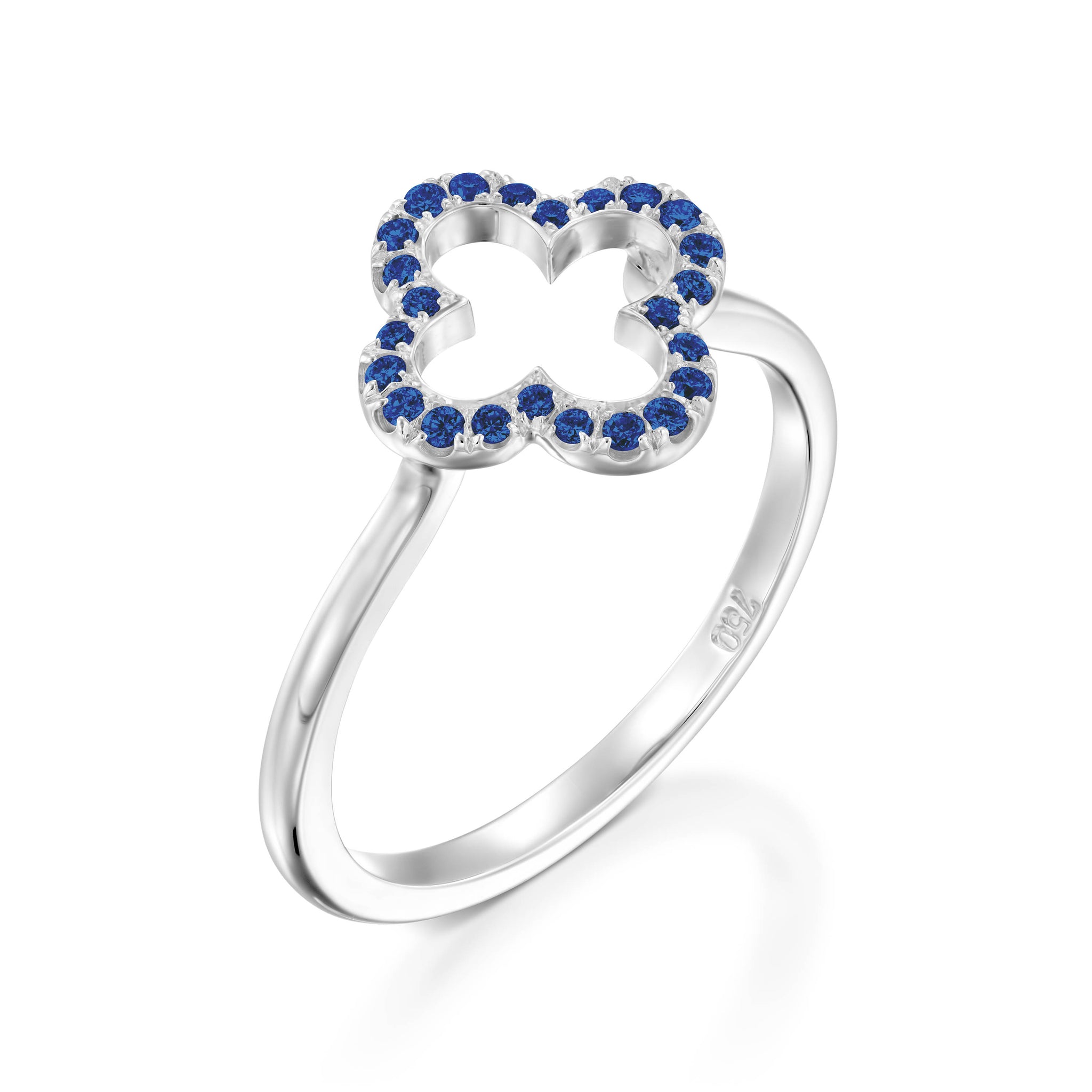 This lovely clover ring is accentuated by the Blue sapphire to silhouette the clover design further. This ring will make high graduation, anniversary, wedding, or just as a gift!