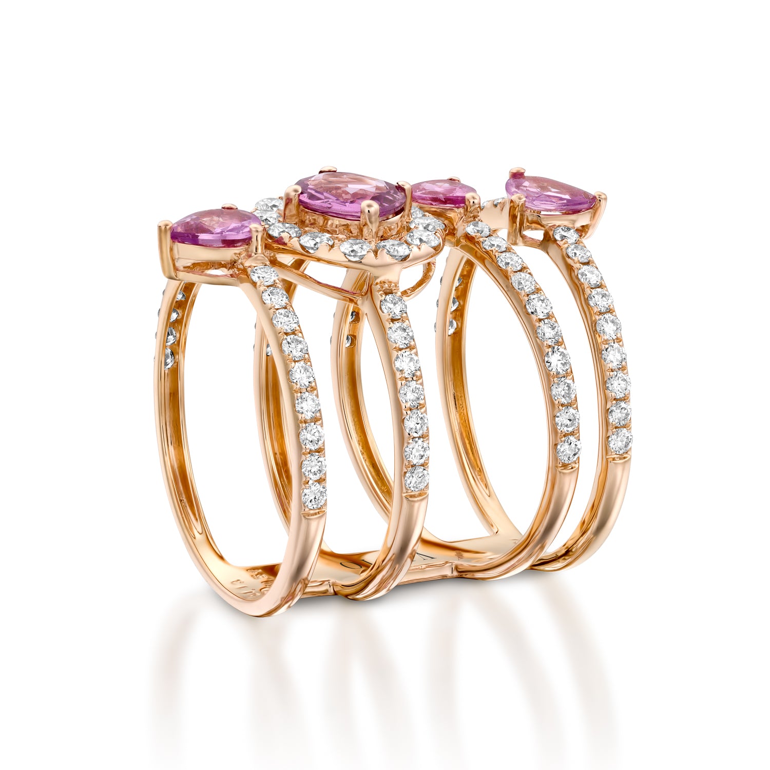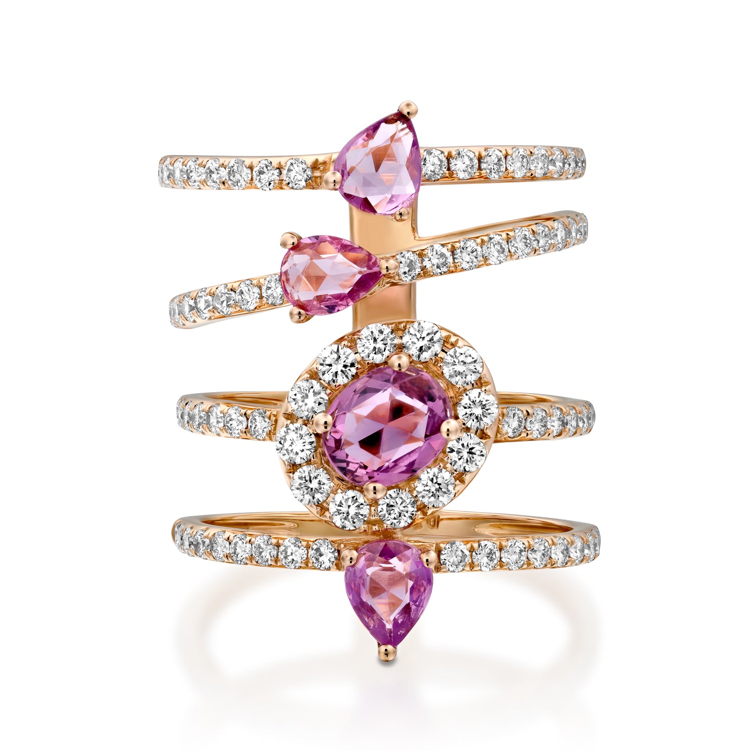 RNT13763-Pink Sapphire diamond multi Layered Ring ring in 18k Red gold