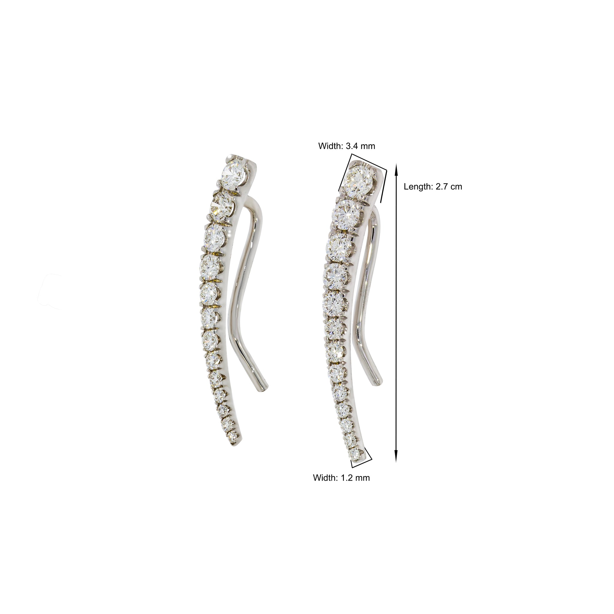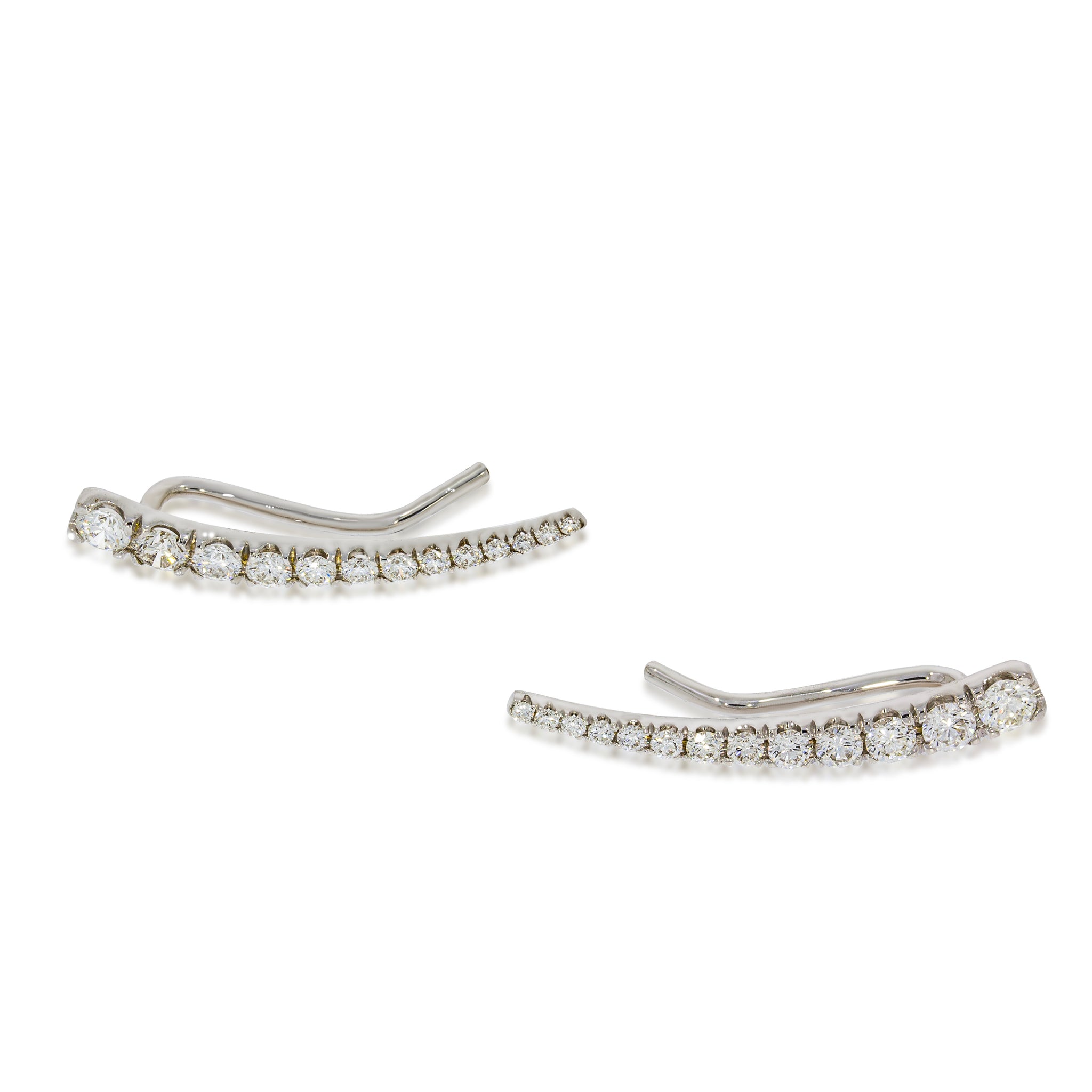 18k white gold Climbing Bar diamonds errings curved to fit your entire earlobe. 0.93 carat round diamonds.