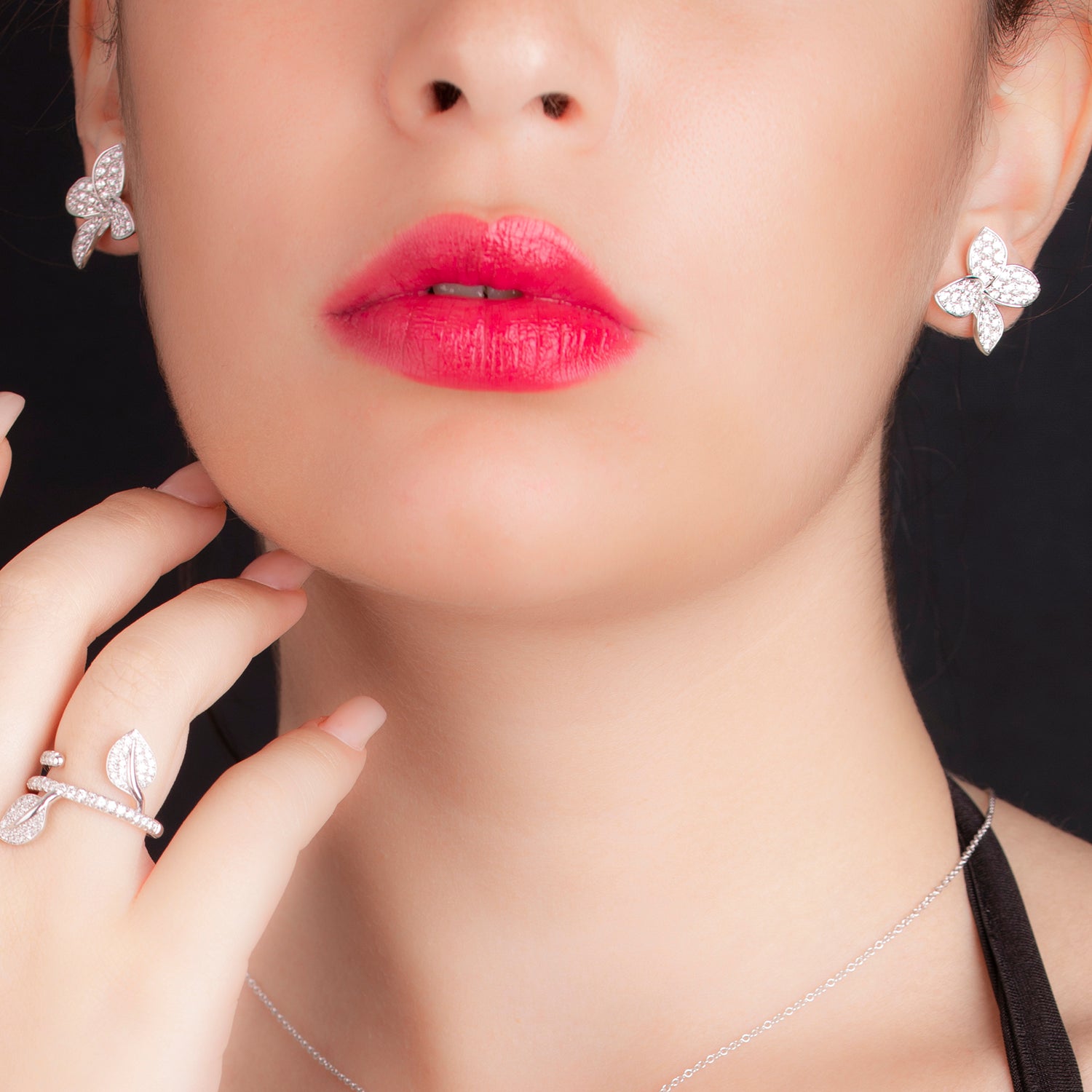 Four Beautiful petals set with 80 sparkling natural diamonds, 2.18 ct. 18K white gold.