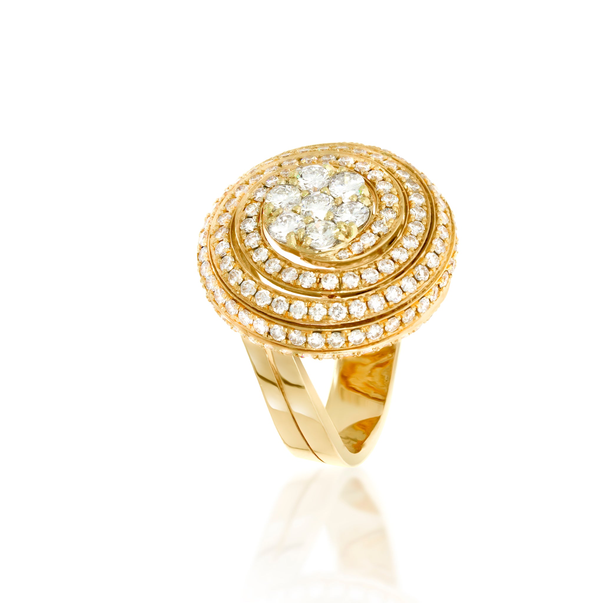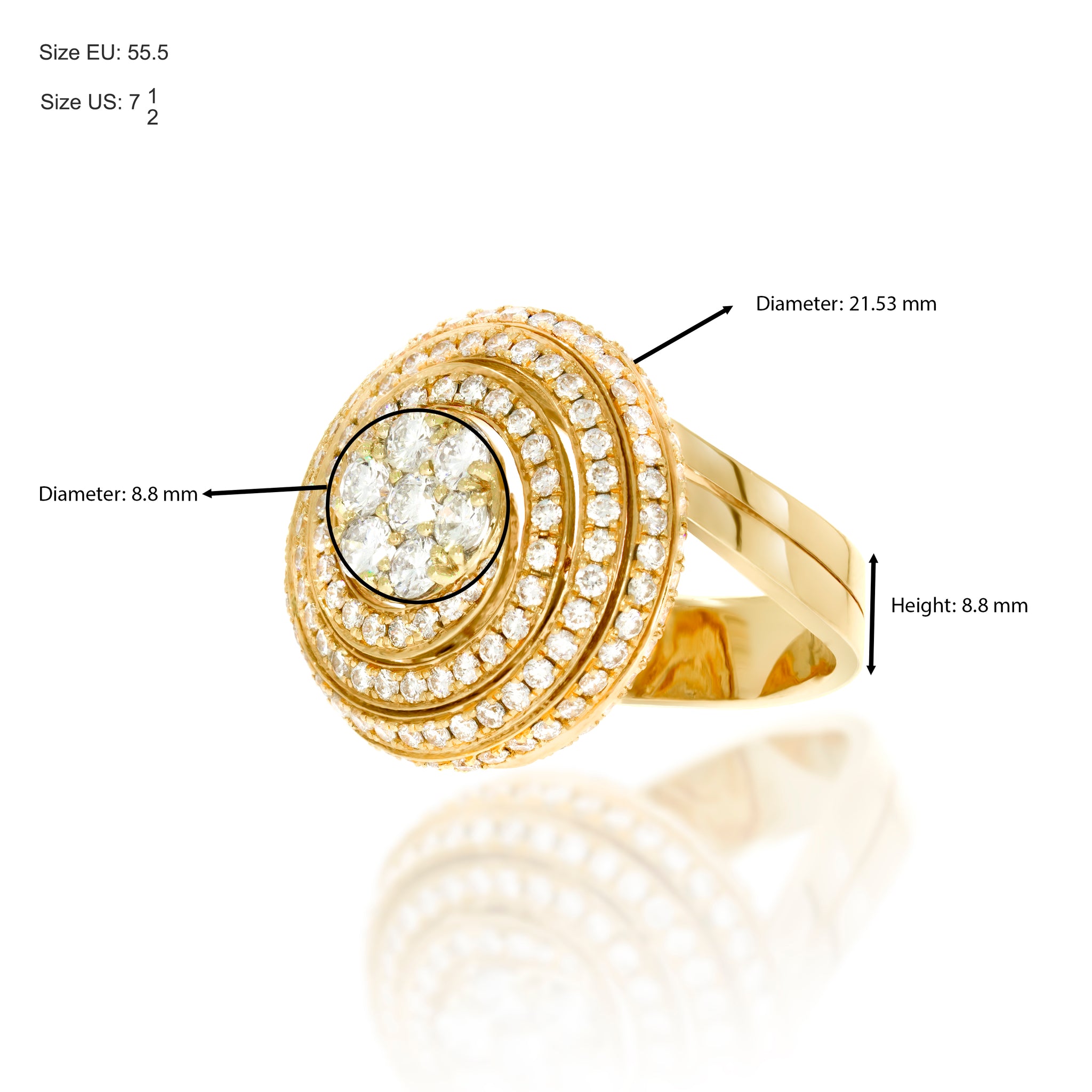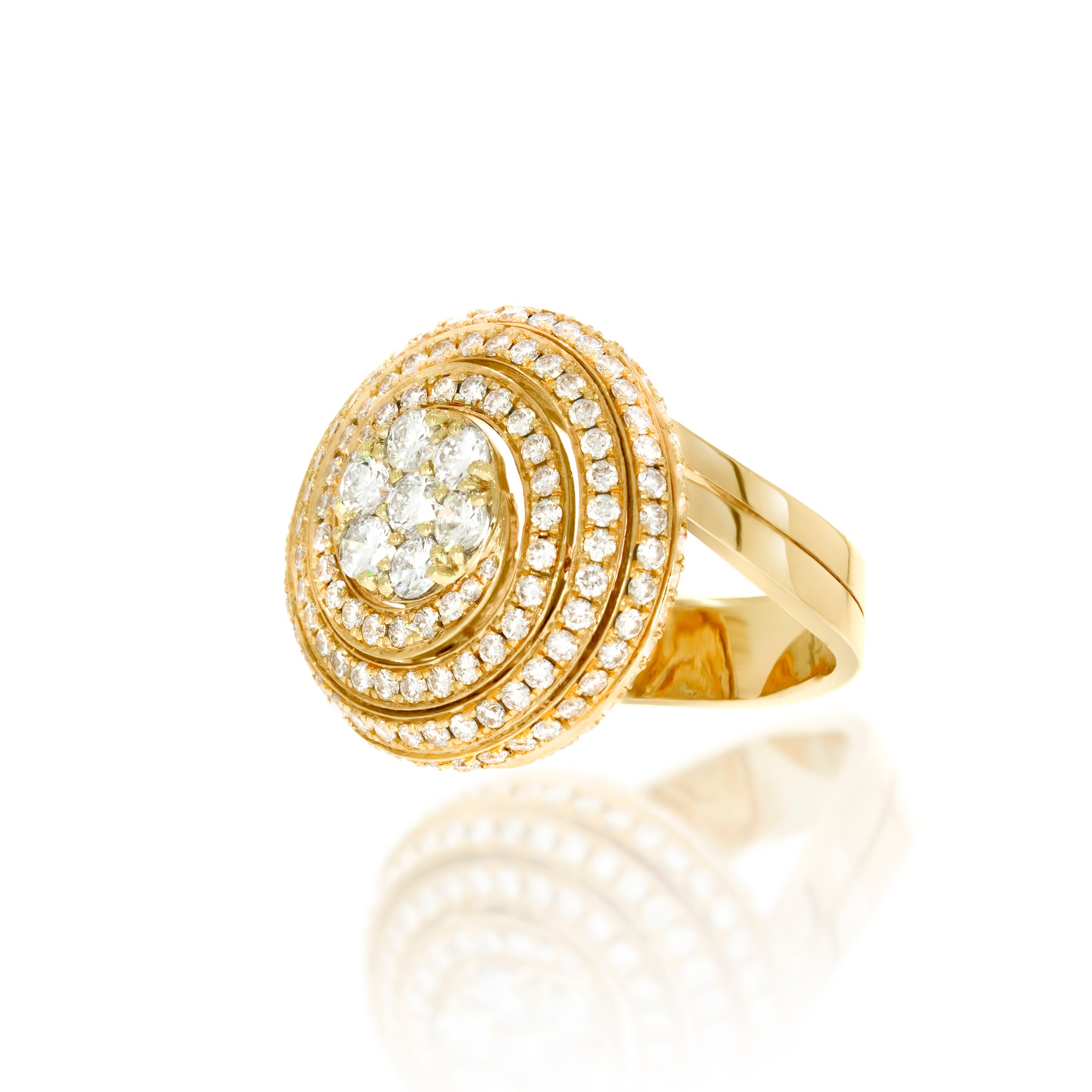 A luxury diamond ring, spiral (5 rows) of stunning diamonds that leading and encasing the larger diamonds flower shape on center. Large Ring