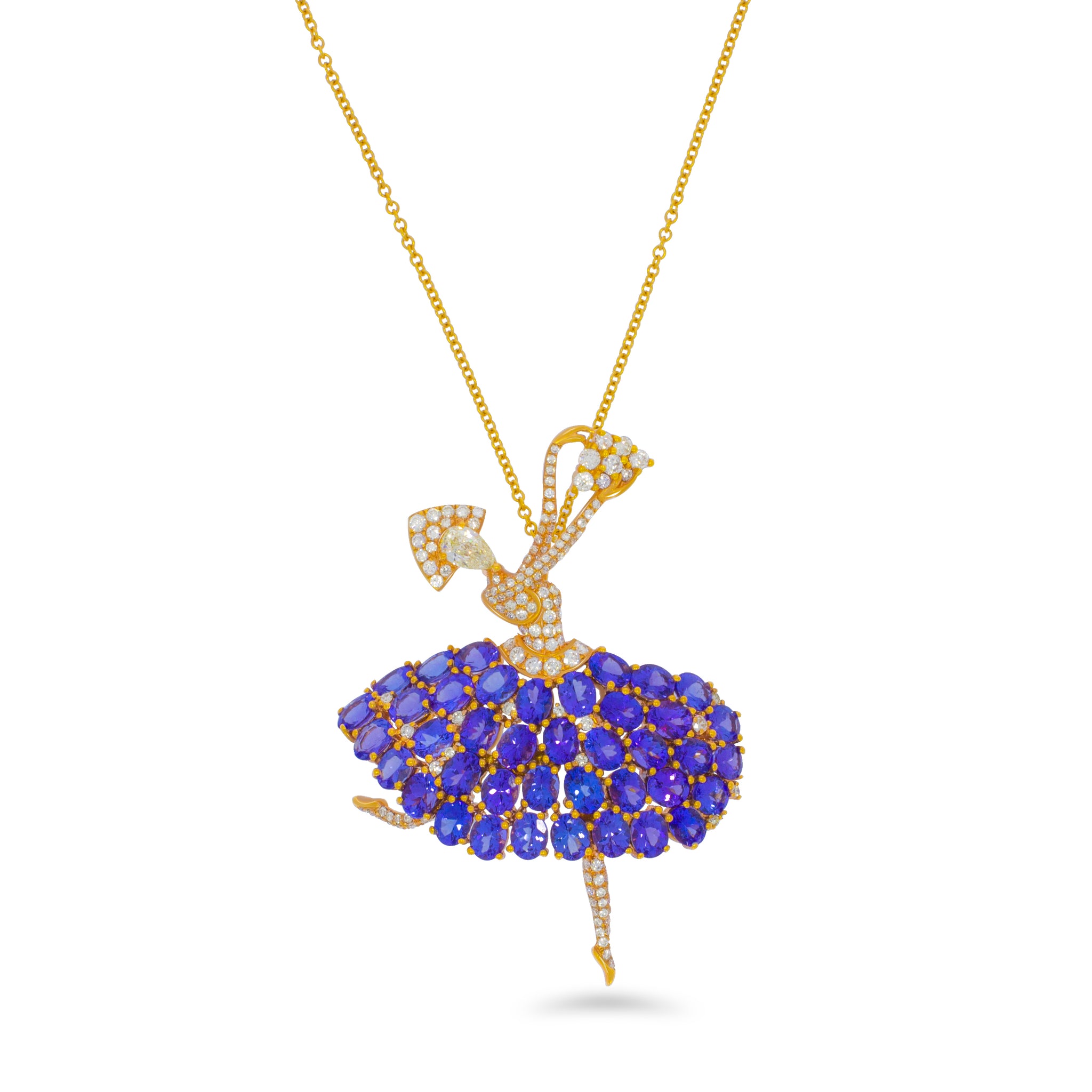 The Dress of the dancer set with 15.62 carat Tanzanite Gemstones.