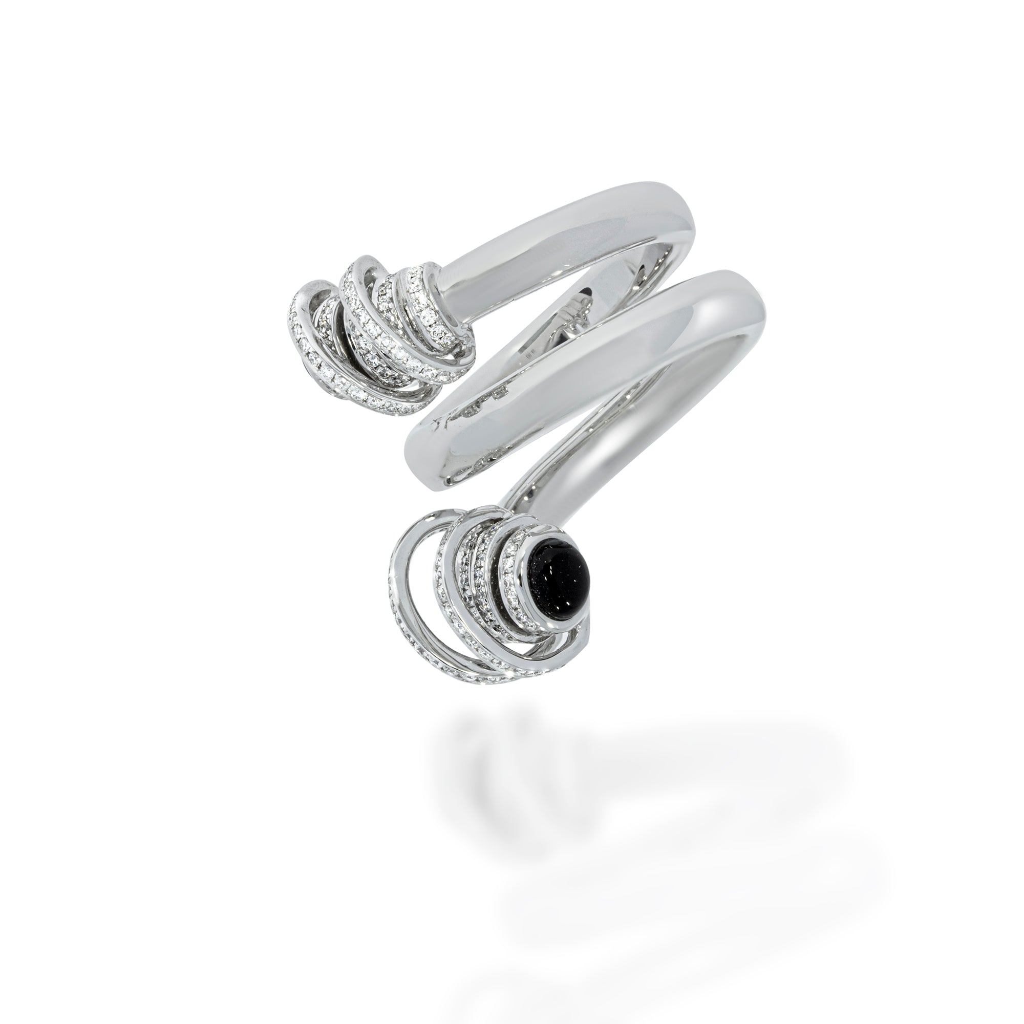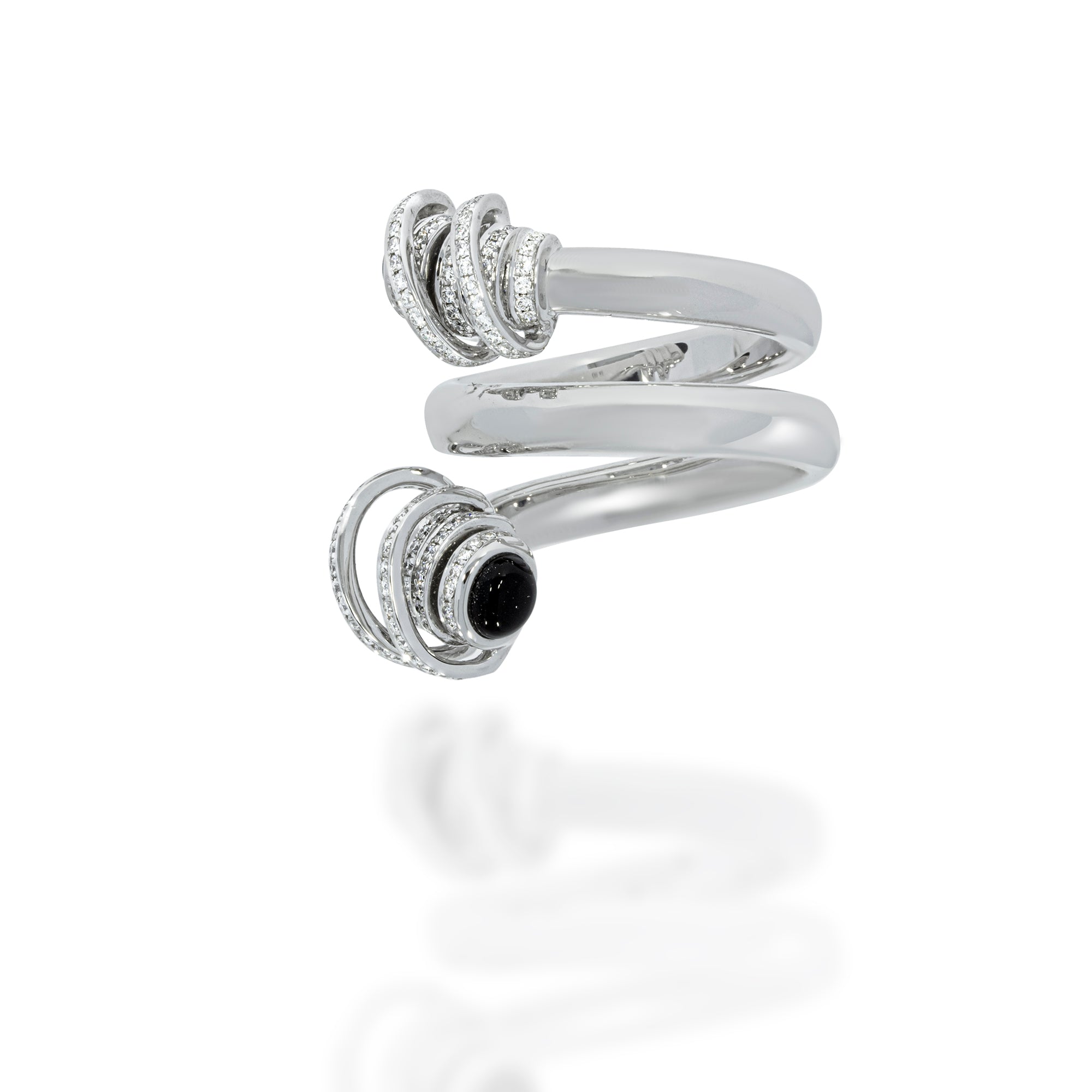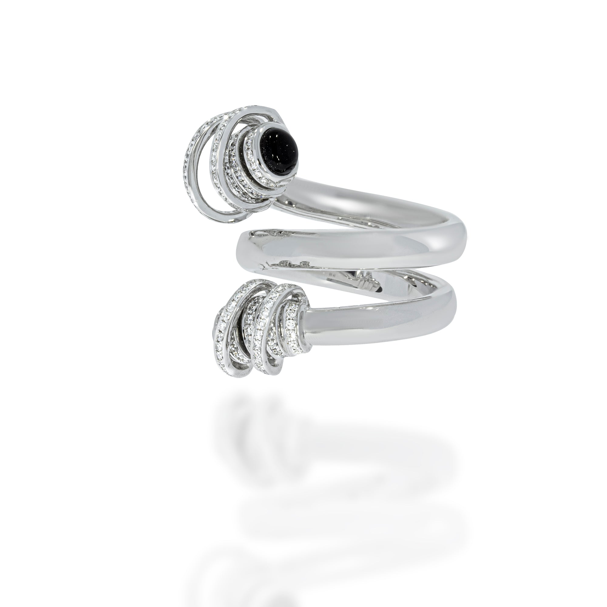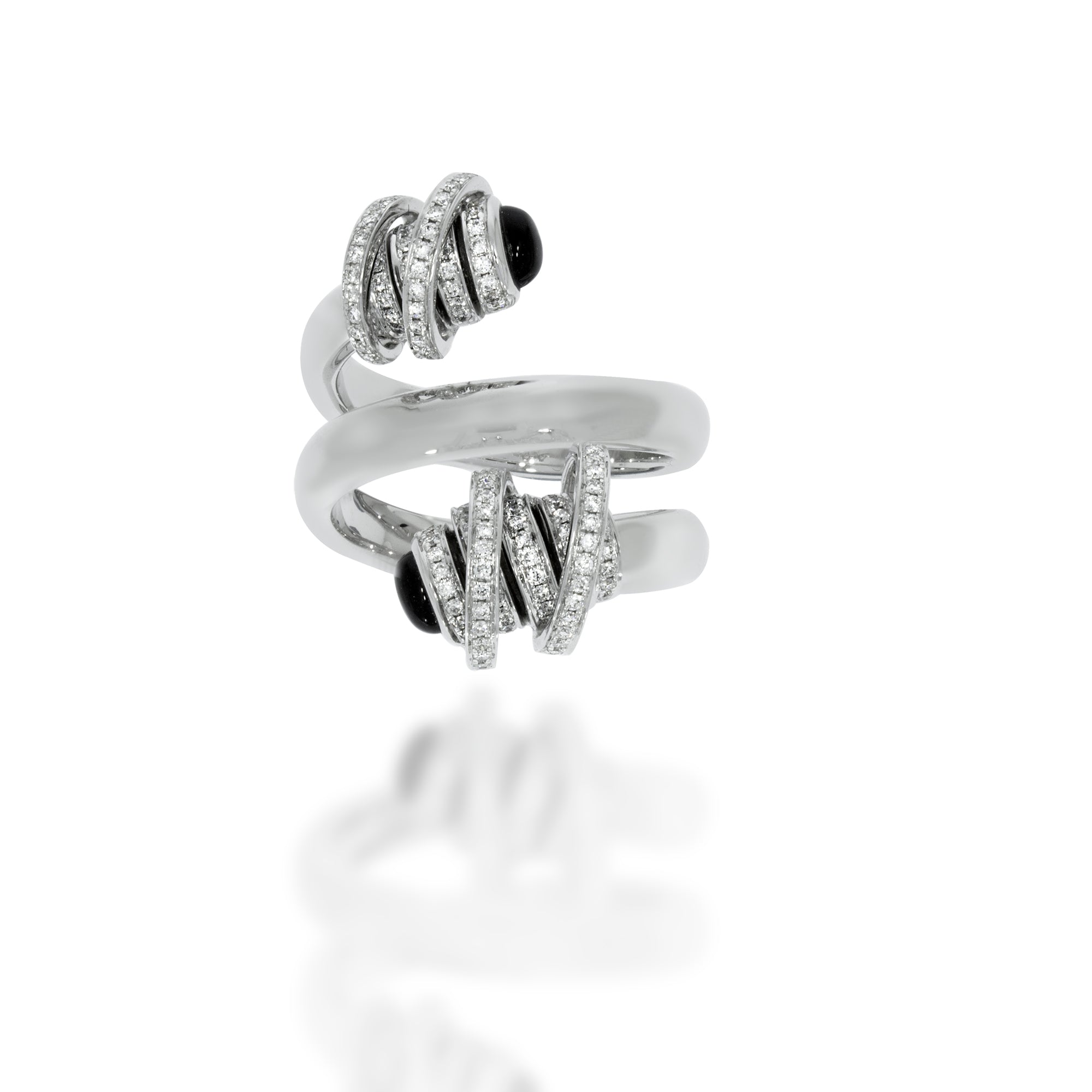 Diamond spiral ring - 18k white Gold, Round Brilliant 0.45 carat Diamonds and 2 Black Onyx gemstone 0.73ct.